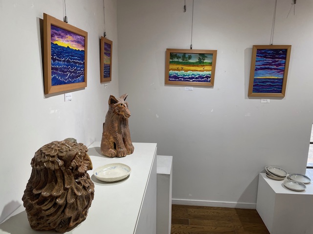 身近な草木や生き物をモチーフとした温かい作品が並んでいます。